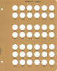 This Dansco Supreme Album for Mercury Dimes (Dansco model number 7123) consists of a brown leatherette binder with loose-leaf hinged pages. The binder is gold stamped and the plastic coated pages are tan in color with black lettering. The pages are held in the binder with two posts that screw apart so that pages can be added, removed and replaced with ease. If a slip case is desired, the 5/8 inch slip case is the proper size for this album.