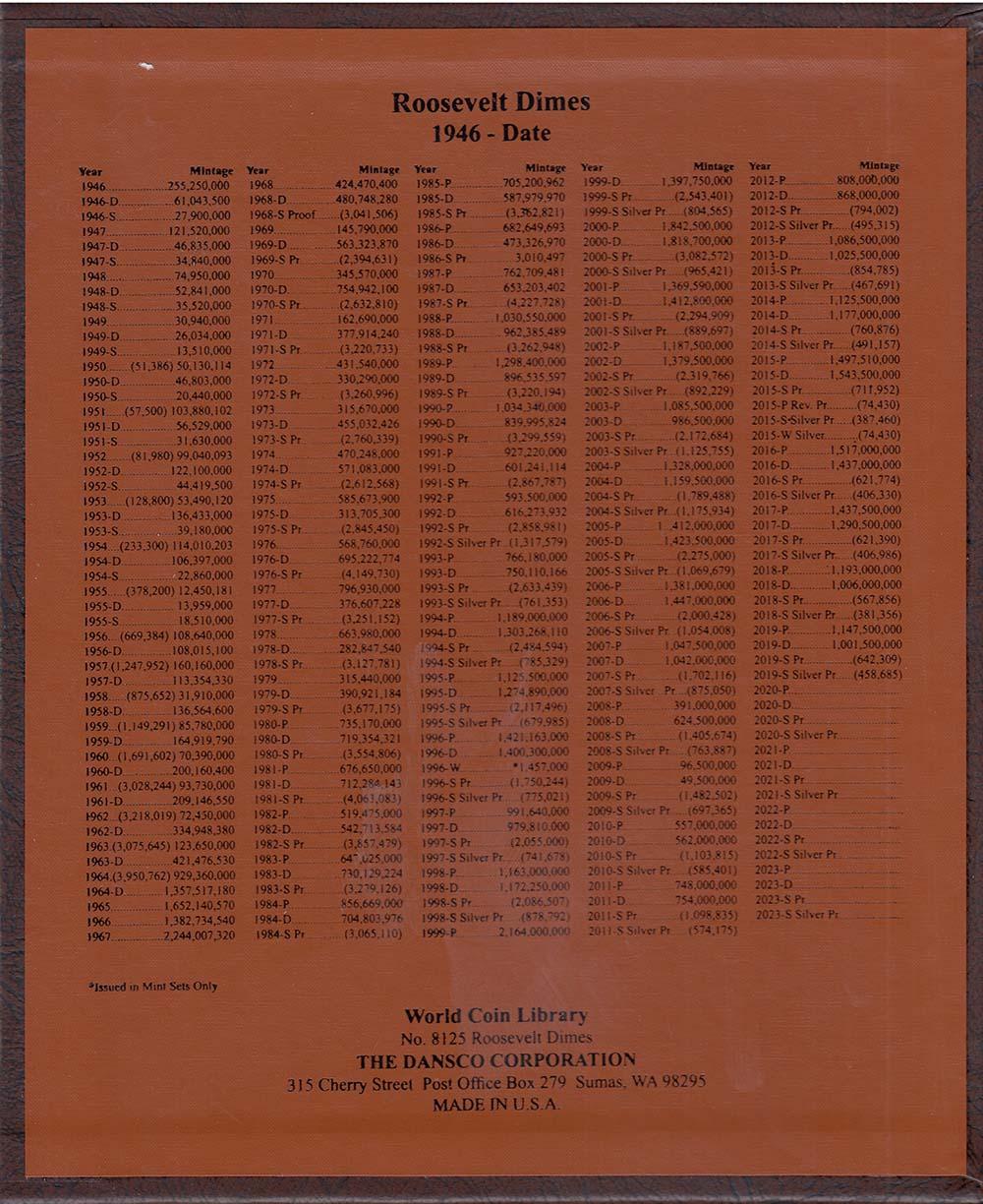 Dansco Album 8125: Roosevelt Dimes w/ Proof 1946-Date