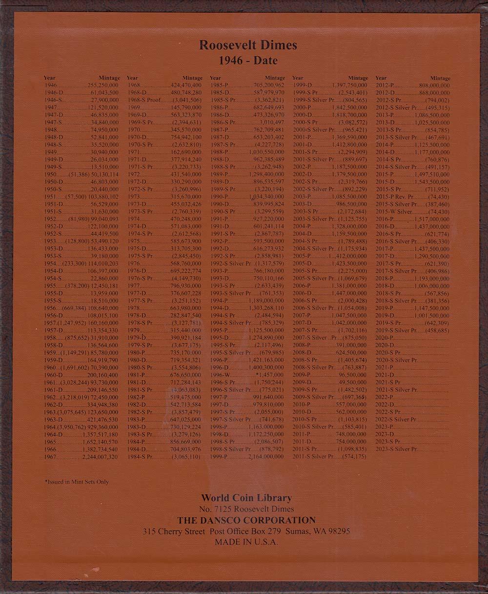 Dansco Album 7125: Roosevelt Dimes 1946-Date