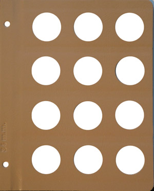 When there isn't a Dansco album that perfectly fits your collecting needs, make your own album using Dansco Blank Binders and Dansco Blank and Extra Pages. This completely blank page contains 12 ports sized to fit coins that are 34mm in diameter.