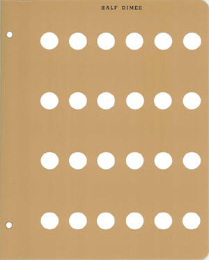When there isn't a Dansco album that perfectly fits your collecting needs, make your own album using Dansco Blank Binders and Dansco Blank and Extra Pages. This page is labeled "Half Dimes"s at the top of the page while the individual ports are unlabeled.