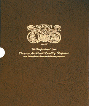 The Dansco Archival Quality Slipcase has been produced with Silver-Guard corrosion-inhibiting protection. The military specification material permanently neutralizes corrosive gases in the air that can cause toning and discolorating. This works with silver, gold, copper and nickel coins and medals, medallions, bars, and ferrous metals. This will not remove existing toning. Use this slipcase (Dansco model 6444) with 1-1/8 inch albums (containing six to seven pages).