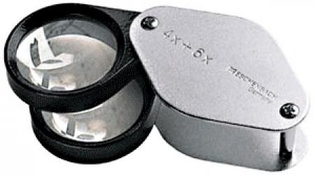 Traditional, technical folding magnifiers provide the high power optics and durability to meet any industry standard. The unique bioconvex lens system eliminates extraneous colors. It consists of coated lenses that are cemented together using different types of glass. The result is crystal-clear optics with no color aberration. The biconvex lens provides a distortion-free image with superior optics throughout the viewing field. Dual lens of 4x and 6x power provide through levels of magnification (4x, 6x, 10x).