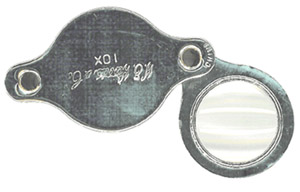 High-power, double lenses loupe magnifier with a wide field view and chrome-plated housing.