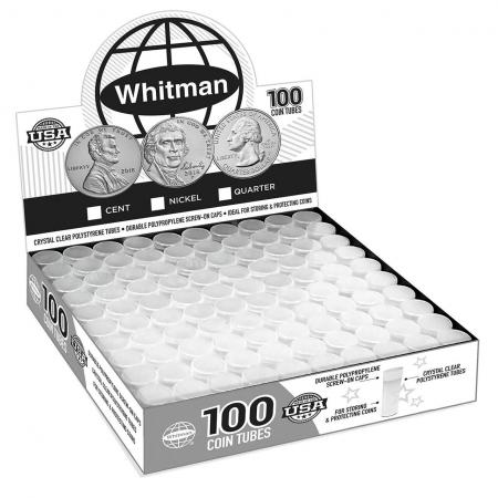 Whitman/HE Harris round polypropylene tubes are slightly opaque and less expensive than their clearer counterparts. They are ideal for storing and protecting rolls of loose coins. Paper wrapped rolls do not fit well in round tubes. Whitman/HE Harris round tubes are sold individually or in cases of 100 tubes.