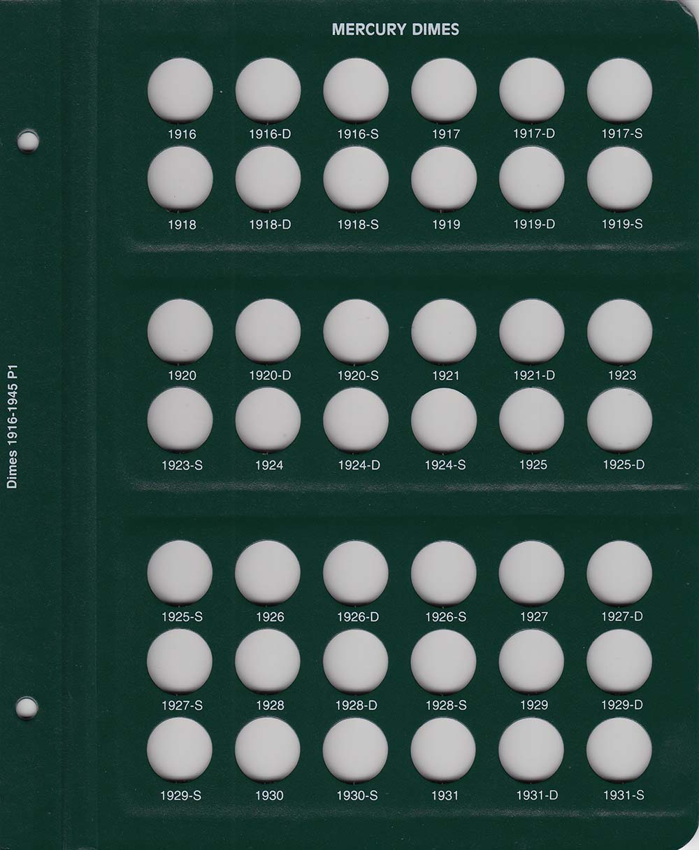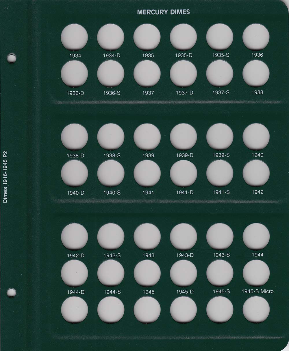 Intercept Shield coin albums are museum quality and a handsome, safe way to store and protect your coins. This album has spaces for Mercury Dimes from 1916 to 1945. The album contains two pages and spaces for all Mercury Dimes are provided, including the 1945-S Micro S. Page 2 also contains six blank spaces for additional coins. The album is constructed from high-grade, acid-free and sulfur-free materials and lined with Intercept Shield, a breakthrough technology protecting your valuable coins from environmental damage. The album also comes with a slip case giving your coins DOUBLE PROTECTION. Intercept Shield acts as a neutralizing agent cleansing the air around the coin protecting it from the harmful effects of corrosion.