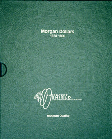 Intercept Shield coin albums are museum quality and a handsome, safe way to store and protect your coins. This album has spaces for Morgan Dollars from 1878 to 1890. The album contains four pages with a space for each date/mint Morgan Dollar released from 1878-1890. The album is constructed from high-grade, acid-free and sulfur-free materials and lined with Intercept Shield, a breakthrough technology protecting your valuable coins from environmental damage. The album also comes with a slip case giving your coins DOUBLE PROTECTION. Intercept Shield acts as a neutralizing agent cleansing the air around the coin protecting it from the harmful effects of corrosion.