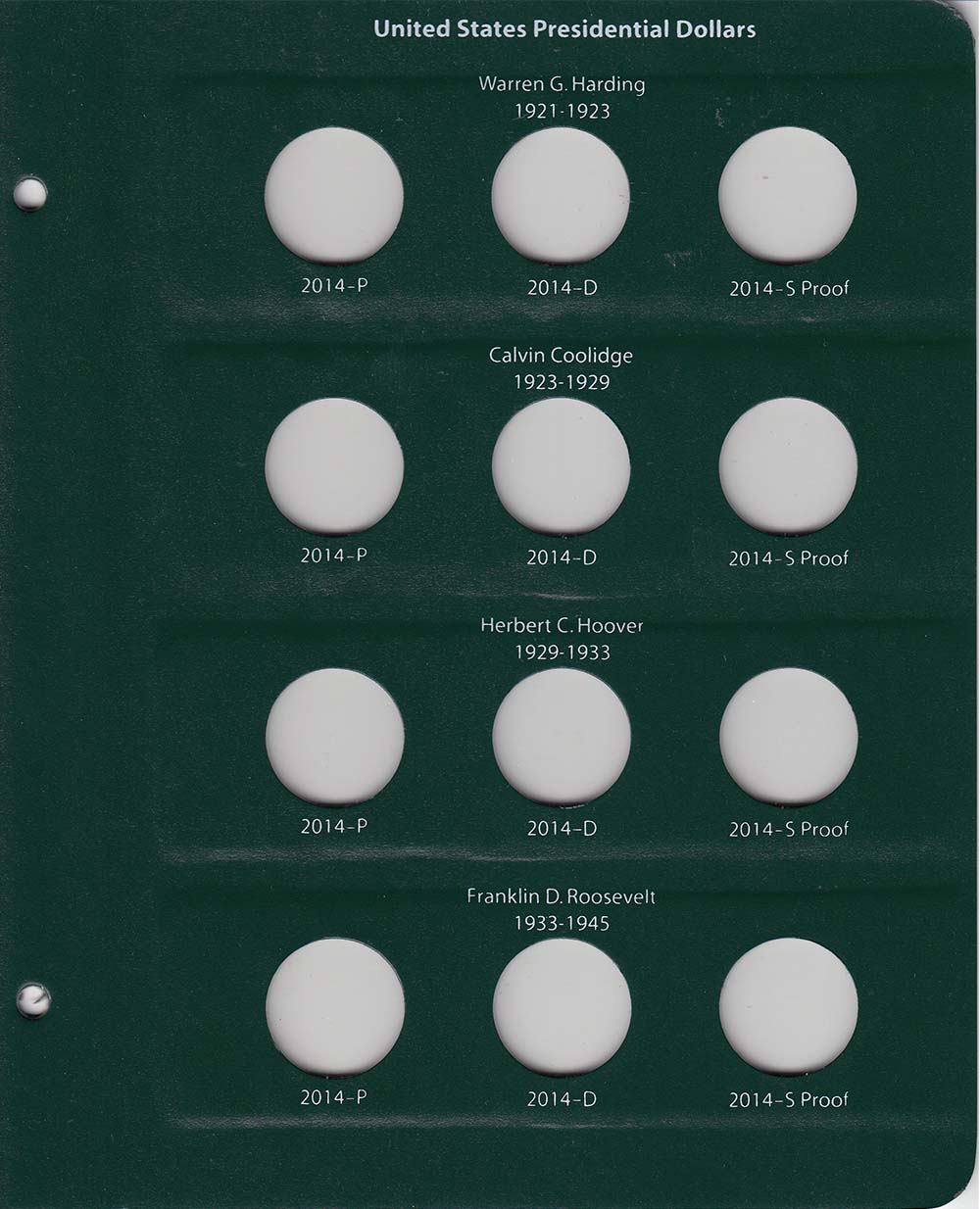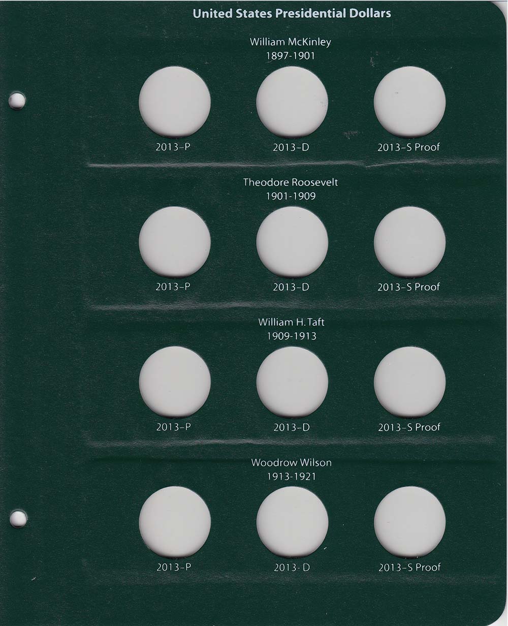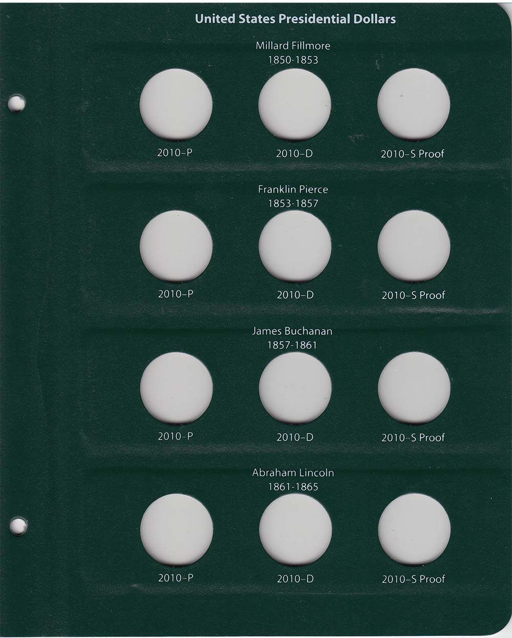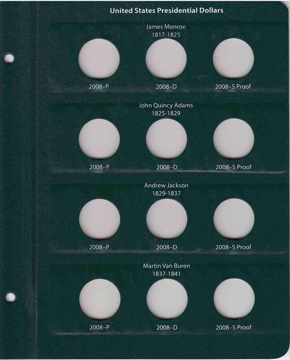 Intercept Shield coin albums are museum quality and a handsome, safe way to store and protect your coins. This album has spaces for Presidential Dollars issued starting in 2007. The album contains nine pages and has three holes per President to display circulation strike Philadelphia Mint (P) and Denver Mint (D) issues and a proof San Francisco Mint (S) strike for each President. Each page contains twelve holes to cover four Presidents and one year of the program. Each page is labeled with the President's name and years served. The nine pages cover George Washington issued in 2007 through Lyndon B. Johnson to be issued in 2015. The album contains room to add additional pages when the final eligible presidents to be honored are determined. The album is constructed from high-grade, acid-free and sulfur-free materials and lined with Intercept Shield, a breakthrough technology protecting your valuable coins from environmental damage. The album also comes with a slip case giving your coins DOUBLE PROTECTION. Intercept Shield acts as a neutralizing agent cleansing the air around the coin protecting it from the harmful effects of corrosion.
