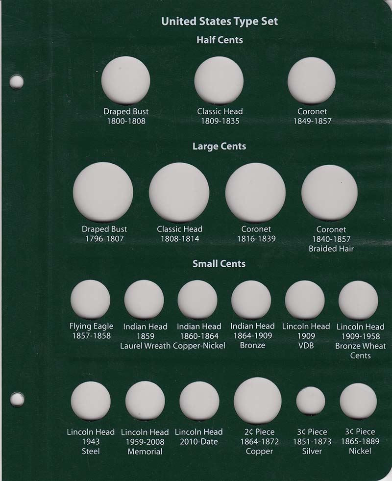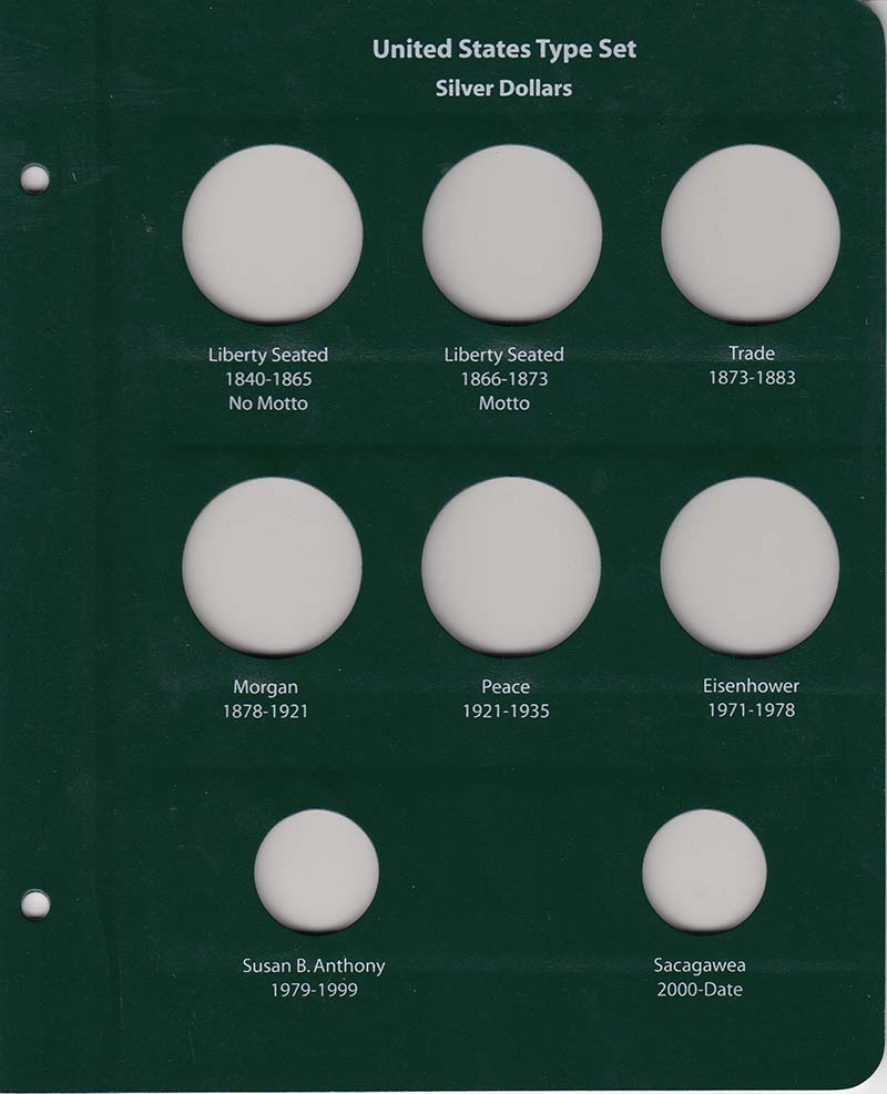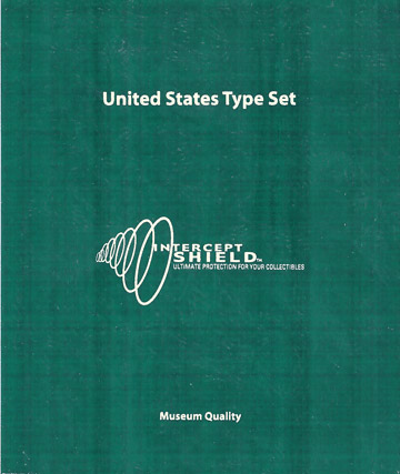 Intercept Shield coin albums are museum quality and a handsome, safe way to store and protect your coins. Note that this album was manufactured with a hole for the Braided Hair Large Cent that is too small. This album is made specifically for collectors of United States Type coins. It contains six pages. The last page contains a selection of commemorative issues. The pages in this album can be removed; so collectors who prefer not to include commemorative issues can easily remove this page. An optional gold type page is sold separately and can be added to the album if desired. The album is constructed from high-grade, acid-free and sulfur-free materials and lined with Intercept Shield, a breakthrough technology protecting your valuable coins from environmental damage. The album also comes with a slip case giving your coins DOUBLE PROTECTION. Intercept Shield acts as a neutralizing agent cleansing the air around the coin protecting it from the harmful effects of corrosion.