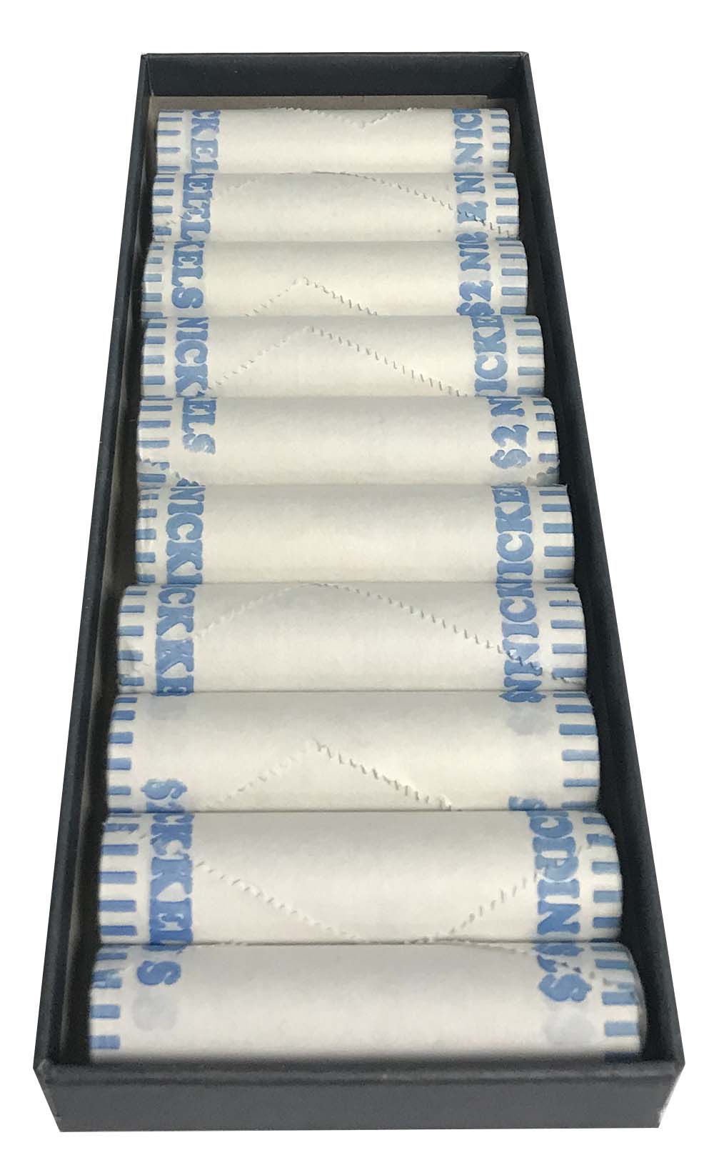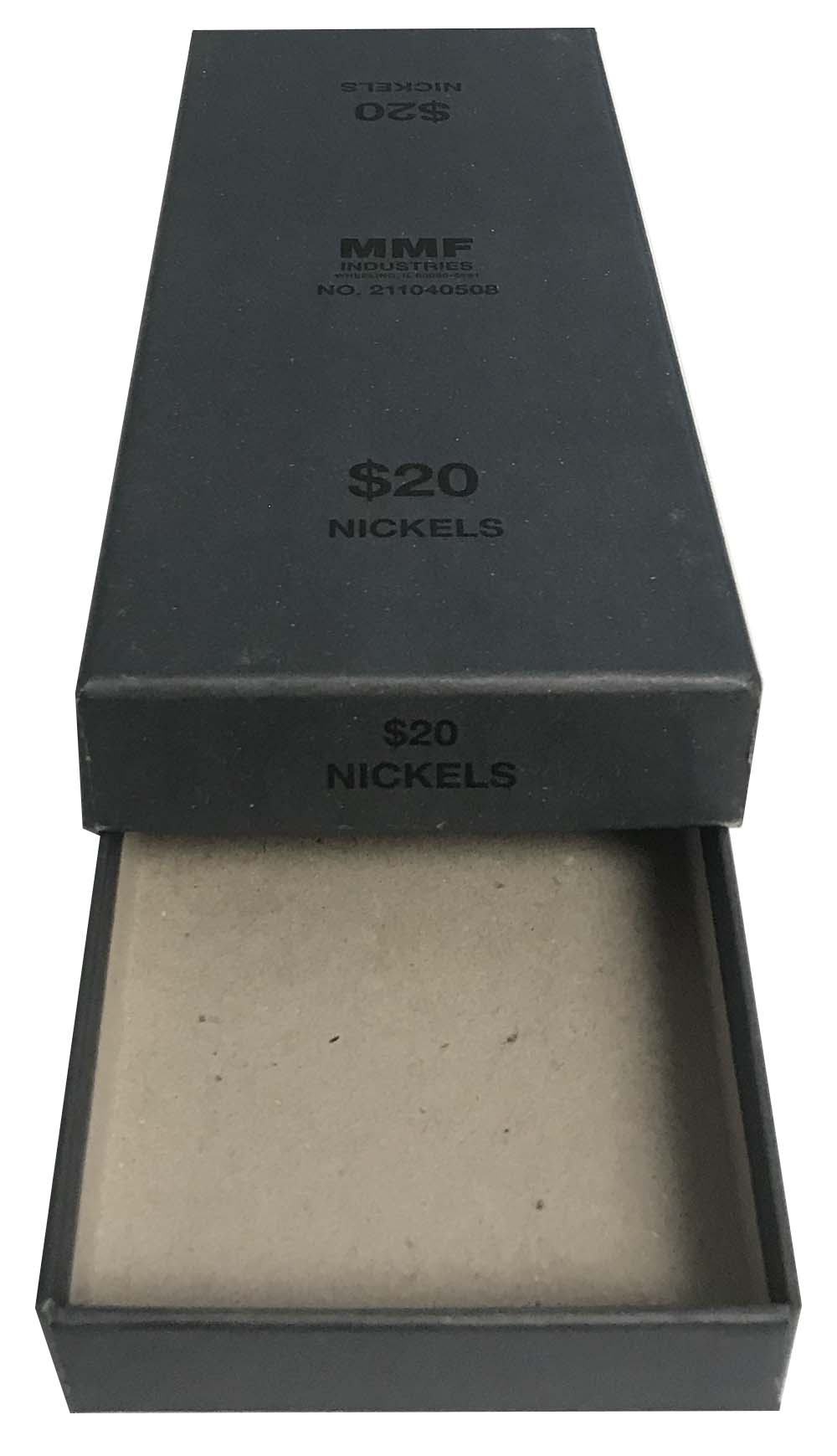 This heavy duty chipboard storage box is designed for paper-wrapped rolls of coins. The boxes are color coded by denomination using the American Banking Association standard colors.
