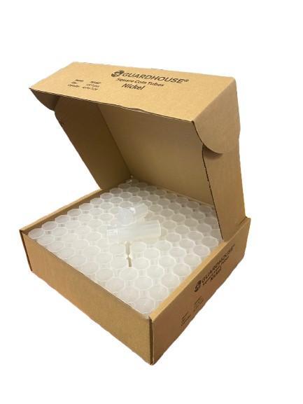 Guardhouse tubes feature a snap-tight lid that fits snugly and securely, yet comes off easily with a simple twist and pull. These tubes are translucent and you can see what’s inside, from the top, bottom and side of the tube, allowing you to quickly identify the contents and correct quantity. Thumb notches on the lid make it easy to remove an individual tube from within a group of tightly packed tubes. Ledges built into the base and lid make for easy vertical stacking. Fits comfortably in your hand. No sharp corners or edges. Sold individually or in cases of 100 tubes.