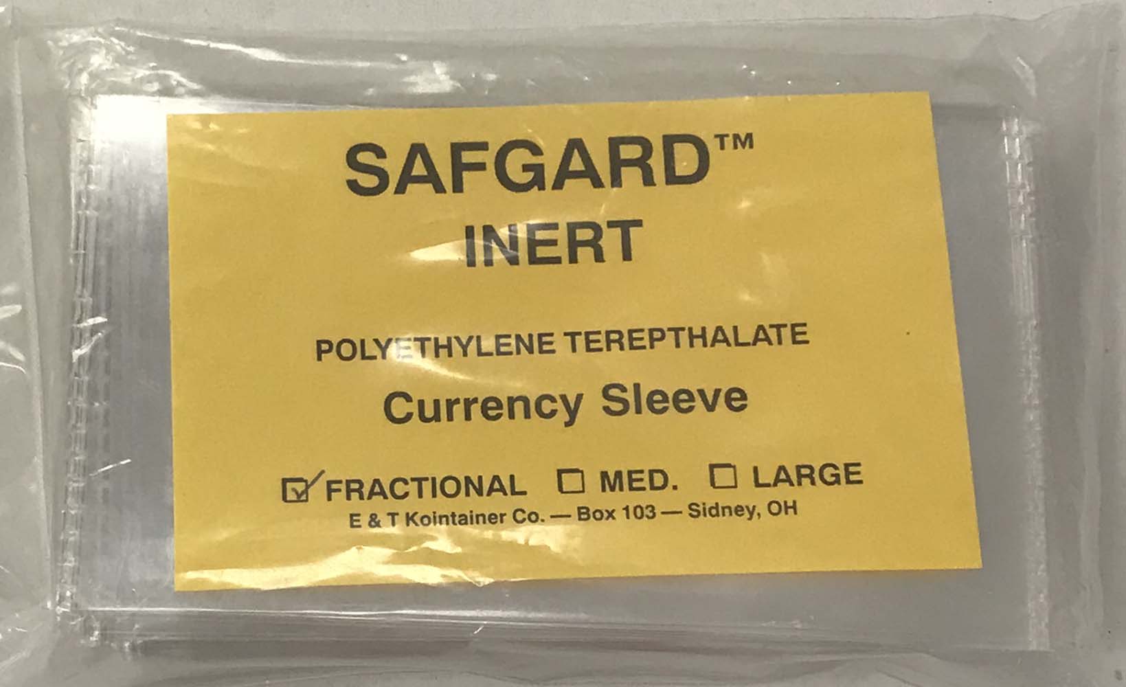 Safgard sleeves use the same great, inert, pure 4 mil Mylar as is used for Saflips to safely preserve currency, large coins, postcards and other similar items. Sold in packs of 50 sleeves.