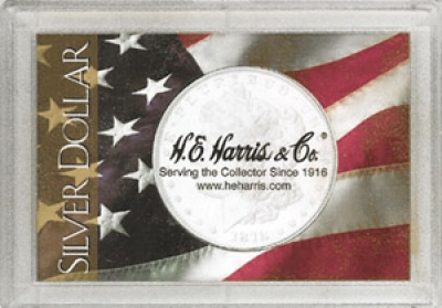 This deluxe 2x3 frosty case features a flag backdrop with one hole for one silver dollar.