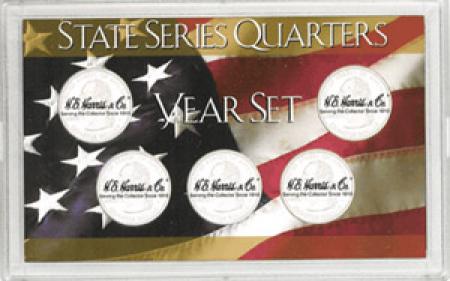 This deluxe 3x5 frosty case features a flag backdrop with five holes for a complete year set of State Quarters.