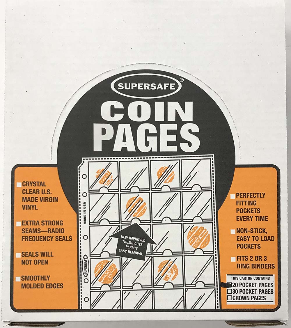 Supersafe vinyl pages are made to fit a regular three-ring binder or purchase a deluxe Supersafe binder in a choice of colors. Pages are available individually or in boxes of 100.
