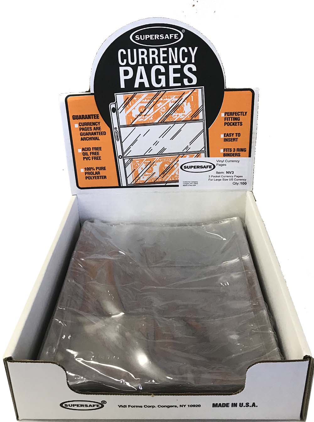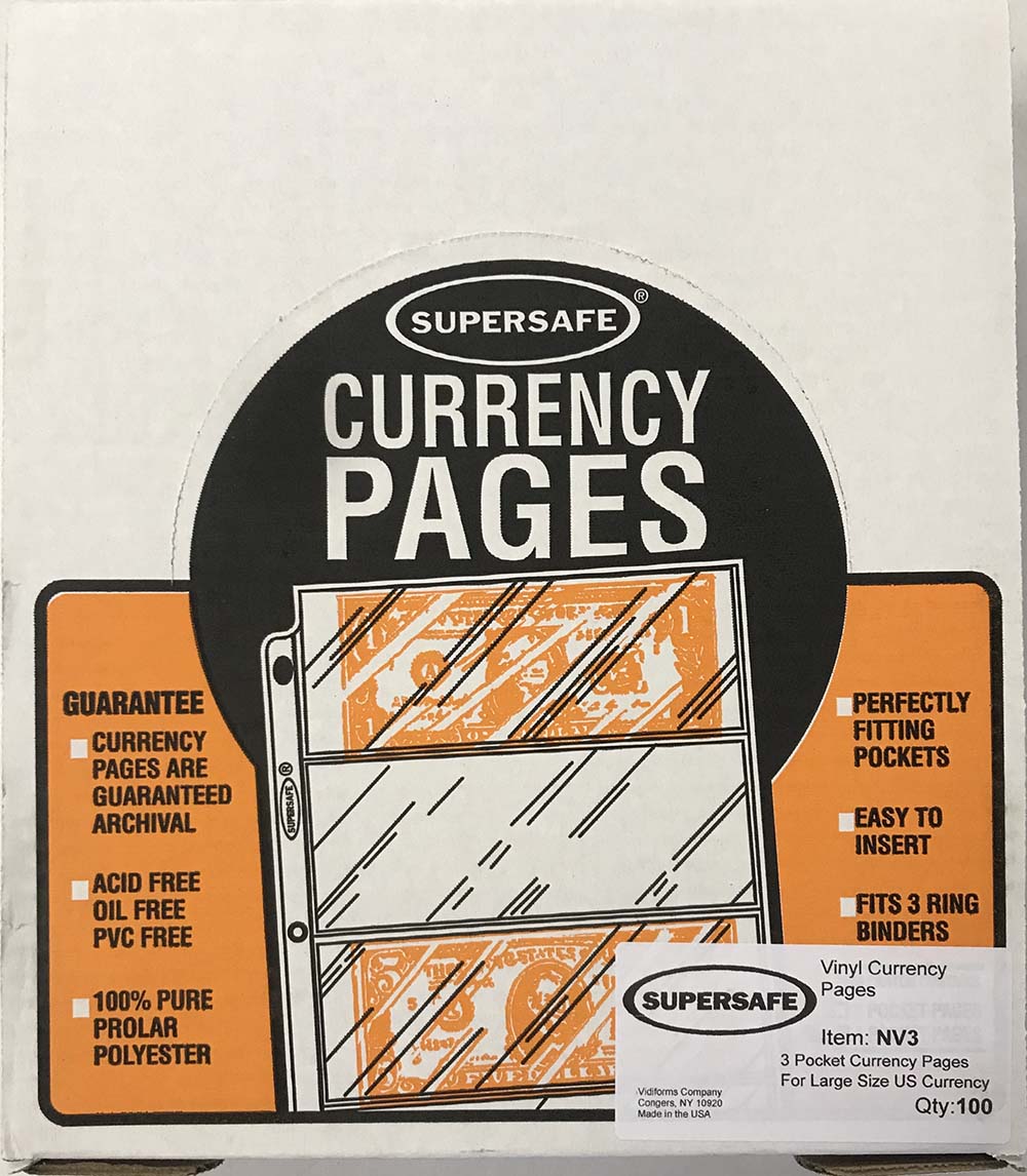 Supersafe Vinyl Pages -- 3 Pocket (Large Currency)