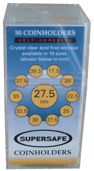 Speed up your coin holdering process using our Supersafe brand self-adhesive 2x2 coin holders. Just peel off the backing, insert a coin and press to close. Save time from not having to staple and reduce risk of staple damage. The holders are made of all archival materials and include no PVC or harmful additives. The non-migrating self adhesive gives an air tight seal to protect your coins. Supersafe coin holders also feature a convenient tab for easy handling Sold in packs of 50 holders or boxes of 1000 holders.