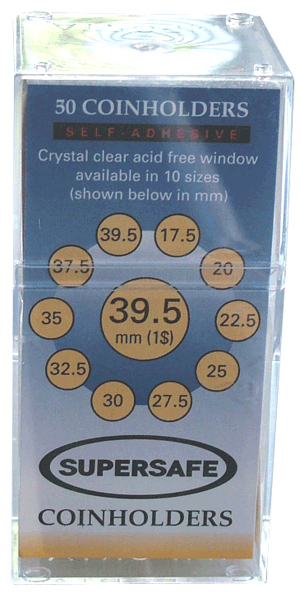 Speed up your coin holdering process using our Supersafe brand self-adhesive 2x2 coin holders. Just peel off the backing, insert a coin and press to close. Save time from not having to staple and reduce risk of staple damage. The holders are made of all archival materials and include no PVC or harmful additives. The non-migrating self adhesive gives an air tight seal to protect your coins. Supersafe coin holders also feature a convenient tab for easy handling Sold in packs of 50 holders or boxes of 1000 holders.