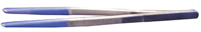 The thick coating on the tips of this eight-inch tweezer holds items securely.