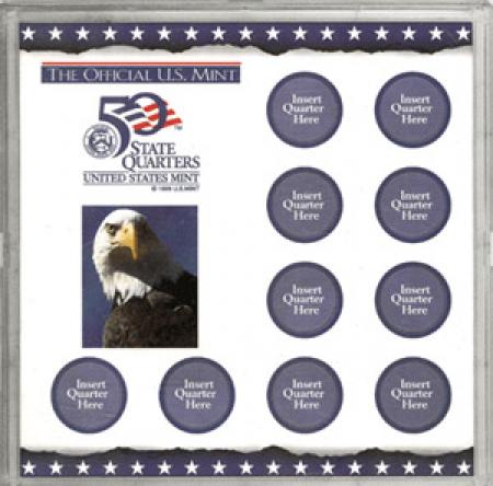 This deluxe 6.5x6.5 frosty case is the US Mint licensed version with the offical 50 State Quarters logo and ten holes for State Quarters.