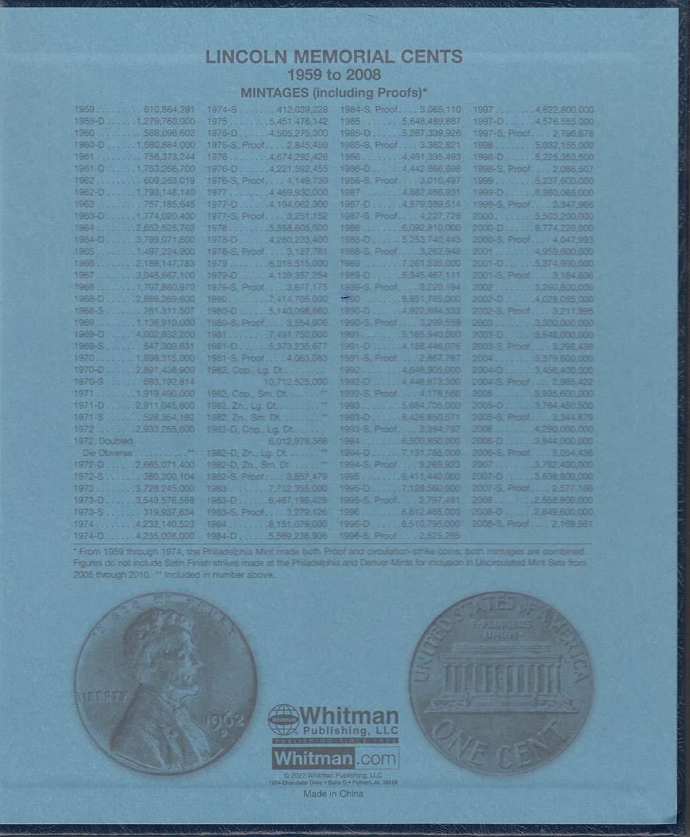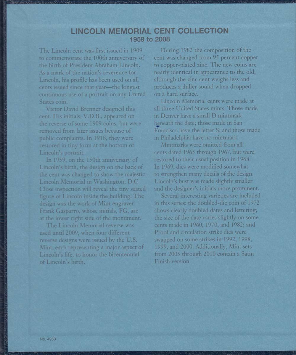 Whitman Album Lincoln Memorial Cents 1959-2008