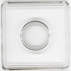 Popular clear plastic holder consists of two rigid plastic pieces that snap together.