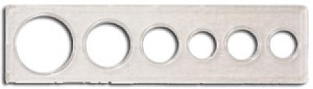 Popular clear plastic holder consists of two rigid plastic pieces that snap together. This holder has six holes ranging in size from one cent to large dollar.