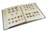 This attractive album as a deep brown colored binder with bright metallic gold imprint on the cover and the spine. The interior of the album is tan colored with black printing on both the pages and the inside covers. The pages feature clear acetate slides that cover and protect both sides of the coins while still allowing them to be viewed. The inside back cover has mintage information for the coins included in the album.