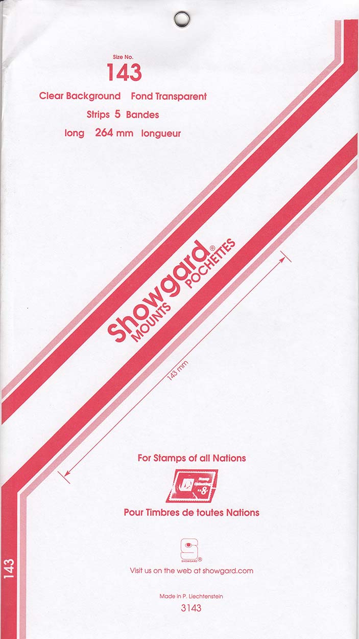 Showgard Stamp Mounts are made from archival, plasticizer-free oriented polystyrene. They contain no softening agents or other components that might be harmful to postage stamp ink, paper, or gum. Showgard Stamp Mounts do not shrink or discolor and are 100% waterproof. The components used in Showgard Stamp Mounts have had philatelic application for more than 40 years in every climate of the world and proven perfectly safe for stamps. Showgard mounts have a very functional design using twin parallel welds to keep stamps securely in position while permitting free passage of air around the stamps. These uncut mount strips can be cut to the desired length. Showgard Stamp Mounts are the most popular, most widely used and most respected stamp mount in the United States market.