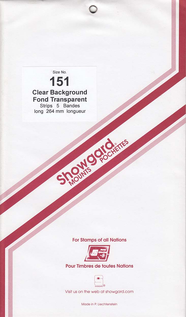 Showgard Stamp Mounts are made from archival, plasticizer-free oriented polystyrene. They contain no softening agents or other components that might be harmful to postage stamp ink, paper, or gum. Showgard Stamp Mounts do not shrink or discolor and are 100% waterproof. The components used in Showgard Stamp Mounts have had philatelic application for more than 40 years in every climate of the world and proven perfectly safe for stamps. Showgard mounts have a very functional design using twin parallel welds to keep stamps securely in position while permitting free passage of air around the stamps. These uncut mount strips can be cut to the desired length. Showgard Stamp Mounts are the most popular, most widely used and most respected stamp mount in the United States market.