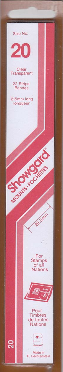 Showgard Stamp Mounts are made from archival, plasticizer-free oriented polystyrene. They contain no softening agents or other components that might be harmful to postage stamp ink, paper, or gum. Showgard Stamp Mounts do not shrink or discolor and are 100% waterproof. The components used in Showgard Stamp Mounts have had philatelic application for more than 40 years in every climate of the world and proven perfectly safe for stamps. Showgard mounts have a very functional design using twin parallel welds to keep stamps securely in position while permitting free passage of air around the stamps. These uncut mount strips can be cut to the desired length. Showgard Stamp Mounts are the most popular, most widely used and most respected stamp mount in the United States market.