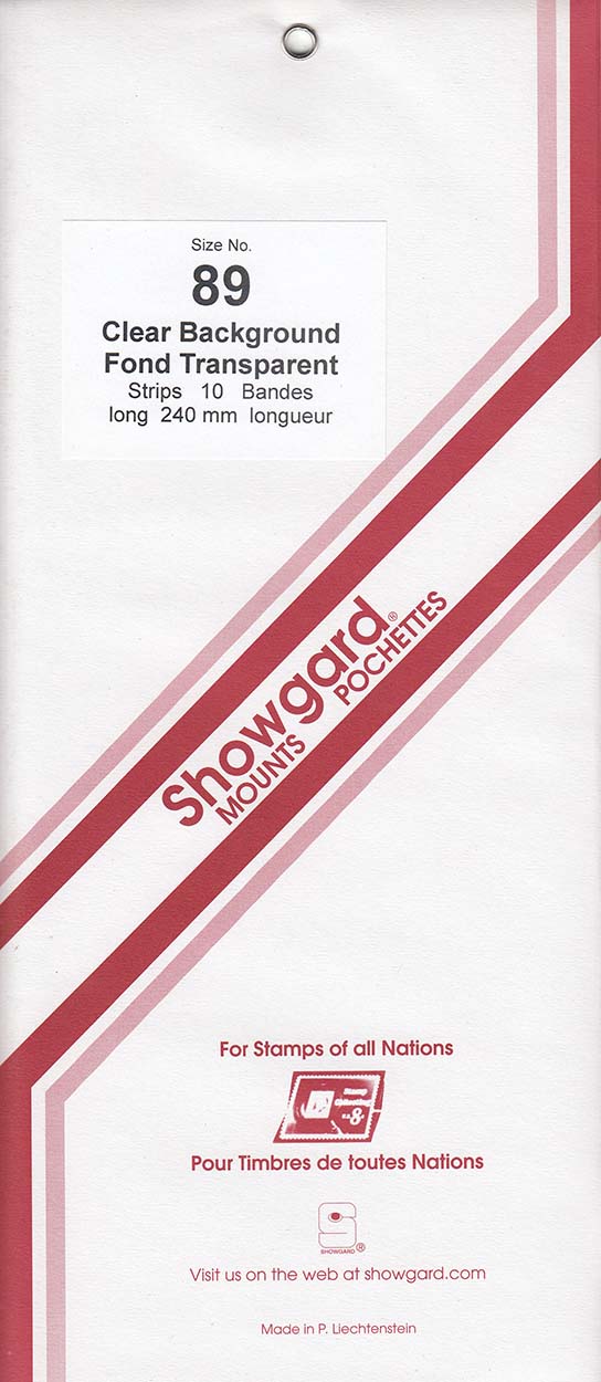 Showgard Stamp Mounts are made from archival, plasticizer-free oriented polystyrene. They contain no softening agents or other components that might be harmful to postage stamp ink, paper, or gum. Showgard Stamp Mounts do not shrink or discolor and are 100% waterproof. The components used in Showgard Stamp Mounts have had philatelic application for more than 40 years in every climate of the world and proven perfectly safe for stamps. Showgard mounts have a very functional design using twin parallel welds to keep stamps securely in position while permitting free passage of air around the stamps. These uncut mount strips can be cut to the desired length. Showgard Stamp Mounts are the most popular, most widely used and most respected stamp mount in the United States market.