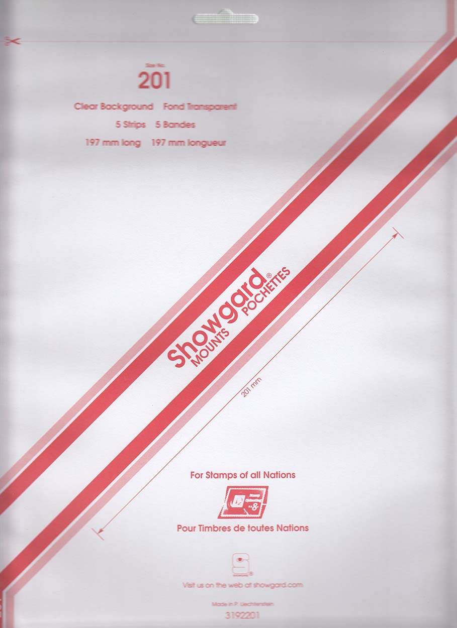 Showgard Stamp Mounts are made from archival, plasticizer-free oriented polystyrene. They contain no softening agents or other components that might be harmful to postage stamp ink, paper, or gum. Showgard Stamp Mounts do not shrink or discolor and are 100% waterproof. The components used in Showgard Stamp Mounts have had philatelic application for more than 40 years in every climate of the world and proven perfectly safe for stamps. Showgard mounts have a very functional design using twin parallel welds to keep stamps securely in position while permitting free passage of air around the stamps. Showgard Stamp Mounts are the most popular, most widely used and most respected stamp mount in the United States market.