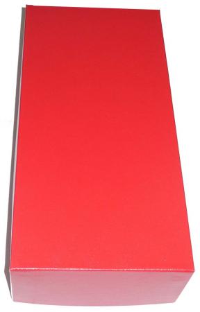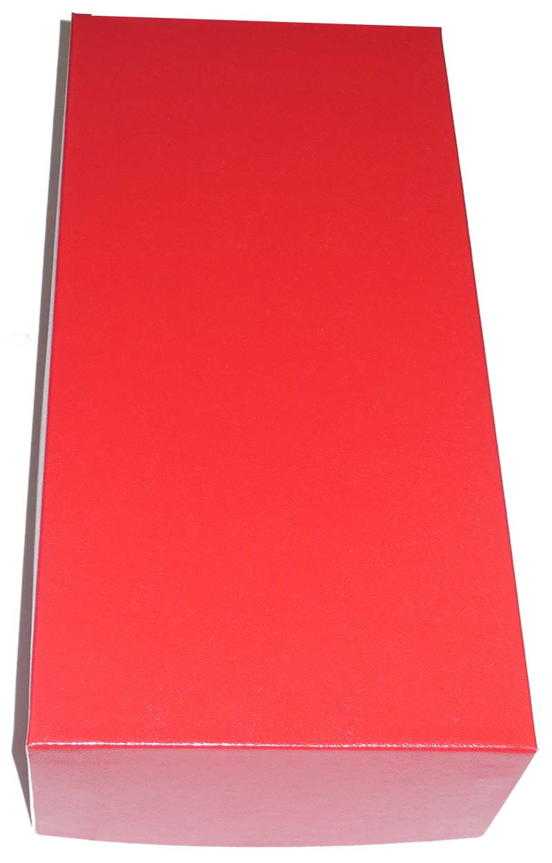 These 14-inch long boxes will hold up to 1200 dealer cards or glassine envelopes. They are constructed of sturdy .040 point board and wrapped with red embossed paper that will not peel.