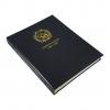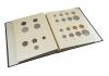 This attractive album as a deep brown colored binder with bright metallic gold imprint on the cover and the spine. The interior of the album is tan colored with black printing on both the pages and the inside covers. The pages feature clear acetate slides that cover and protect both sides of the coins while still allowing them to be viewed. The inside back cover has mintage information for the coins included in the album.