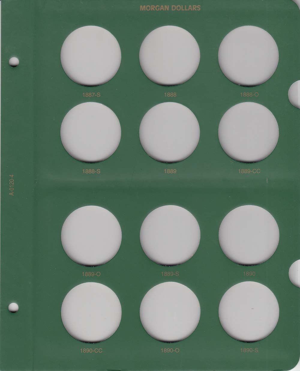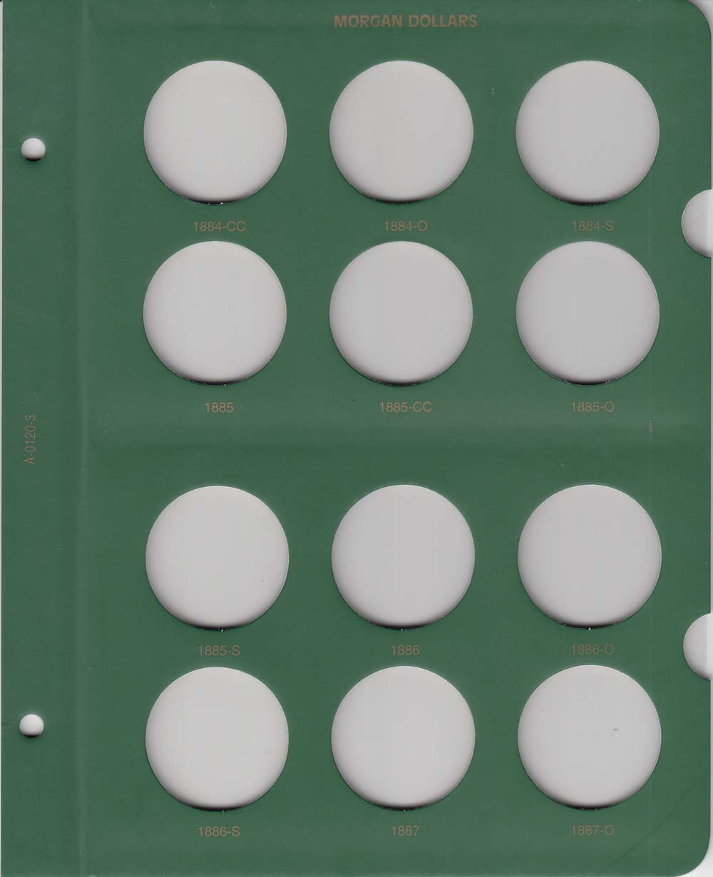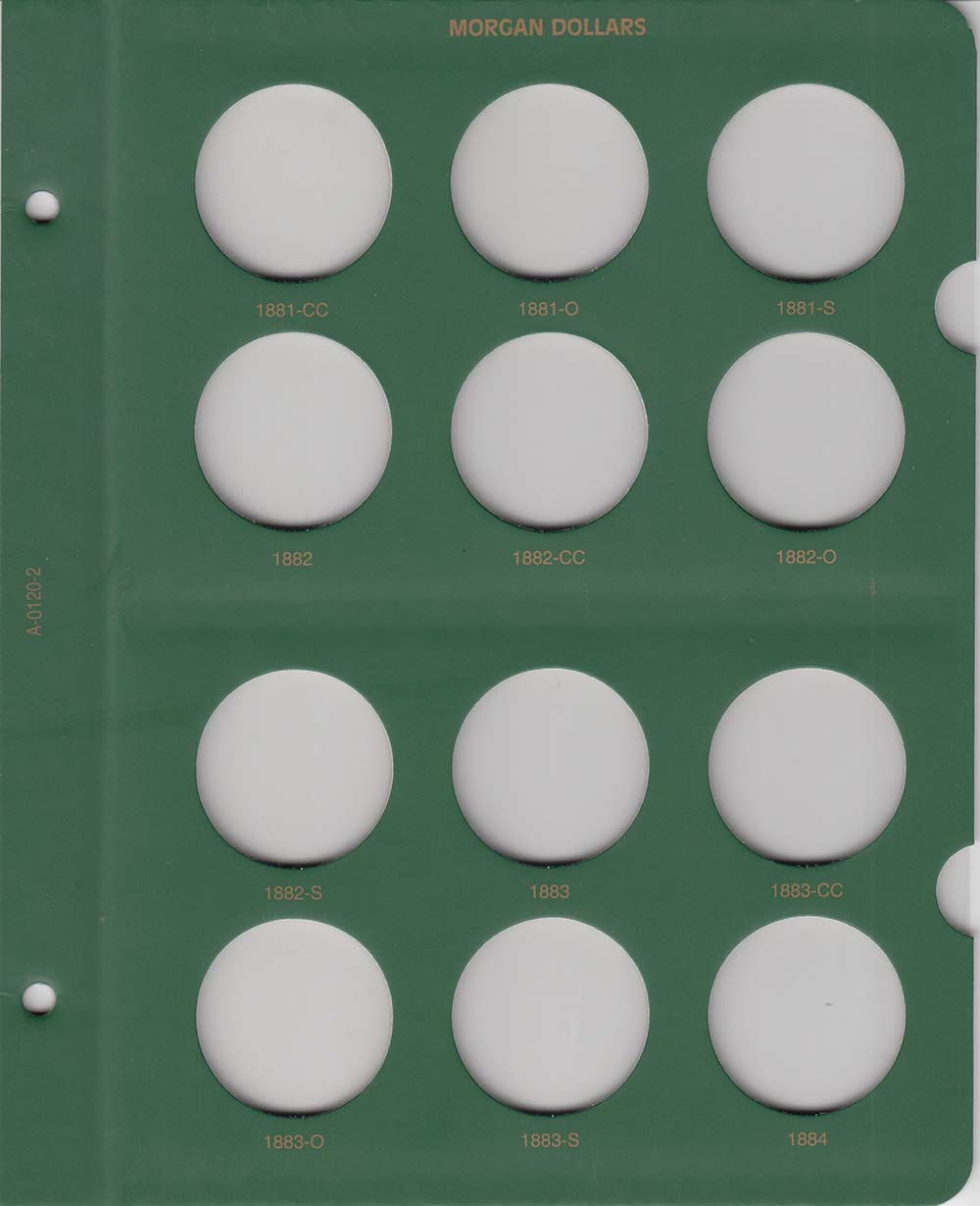 The album has slots for each of the regular issue Morgan Dollars from 1878 to 1890.
