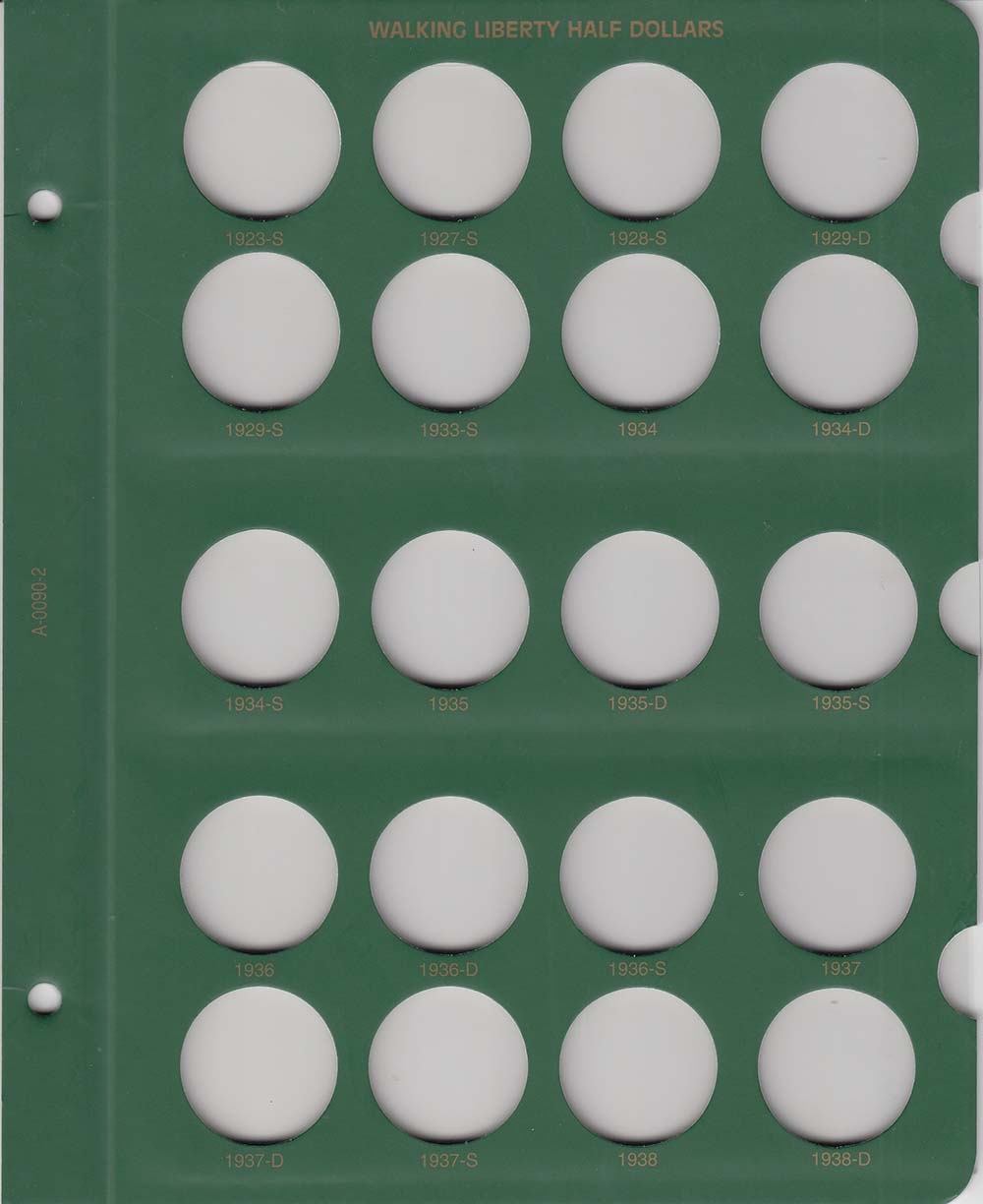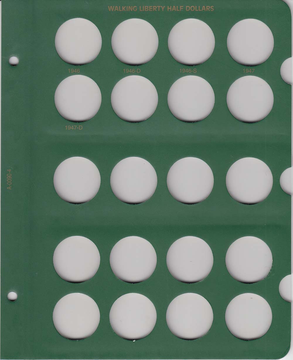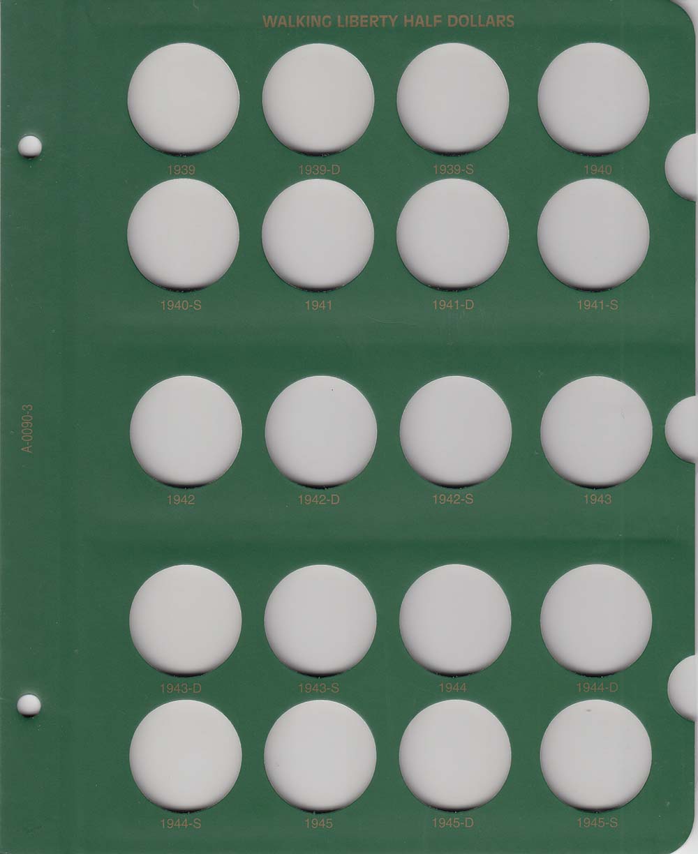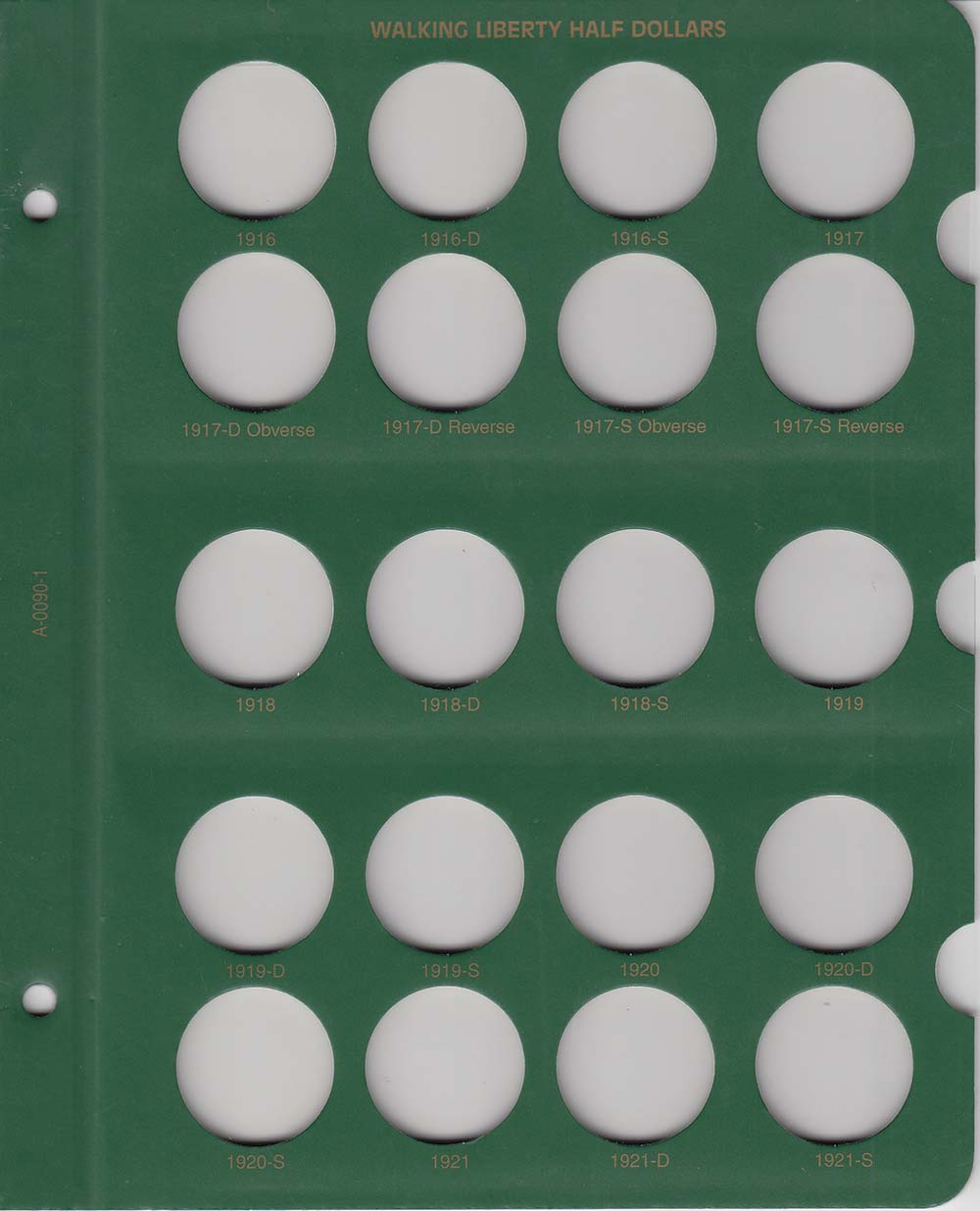 The Coin Collector albums are comparable in manufacturing quality to the major brands (such as Dansco, Whitman and Littleton) but at a fraction of the cost. The covers are similated leather texture and dark green in color. Like the other major brands, The Coin Collector albums have clear acetate slides that cover each side of the coin making both the obverse and reverse visible. The Coin Collector albums do not contain PVC.The album has slots for each of the regular issue Walking Liberty Half Dollars minted from 1916 to 1947 including both the obverse and reverse mintmark varieties for 1917-D and 1917-S. In addition, there are 15 blank slots for additional coins.