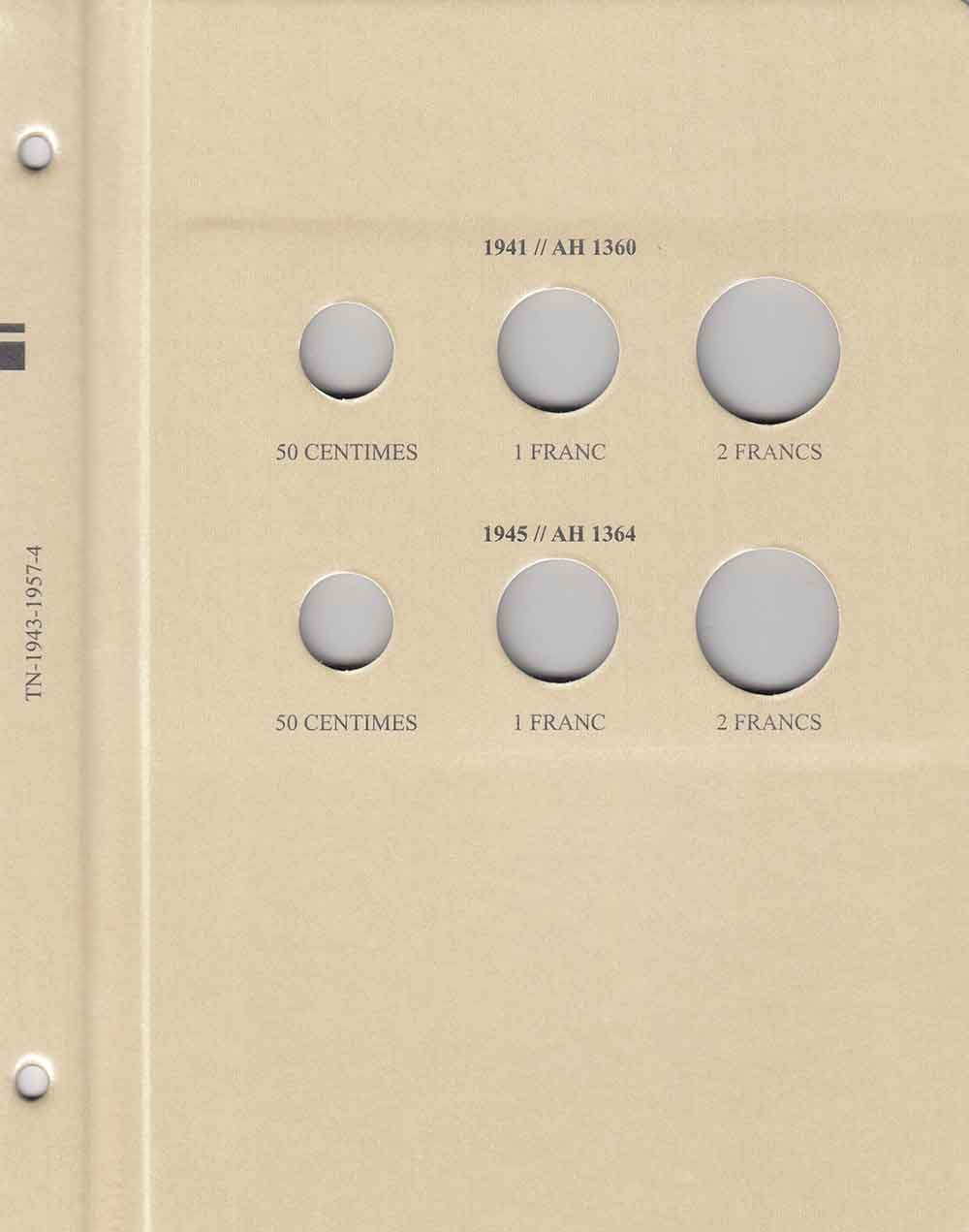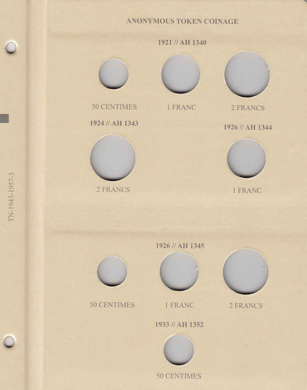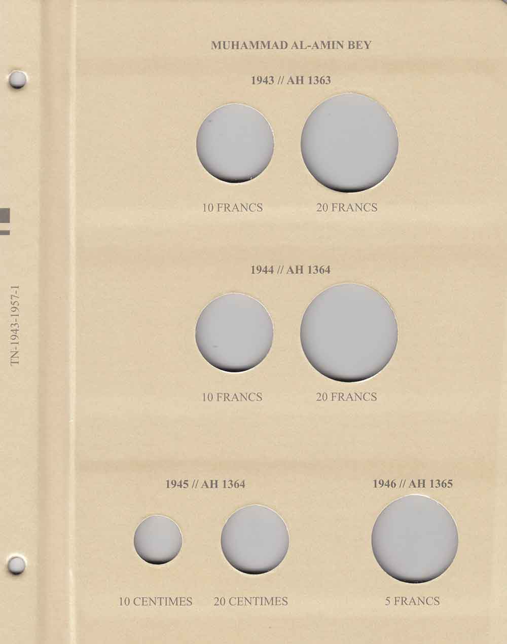 This album consists of 4 pages and contains a total of 30 slots. These slots are designed to house coins issued by Tunisia between 1921 and 1957, with the correct diameters and dates for all known varieties.