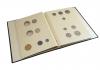 This attractive album as a deep brown colored binder with bright metallic gold imprint on the cover and the spine. The interior of the album is tan colored with black printing on both the pages and the inside covers. The pages feature clear acetate slides that cover and protect both sides of the coins while still allowing them to be viewed. The inside back cover has mintage information for the coins included in the album.