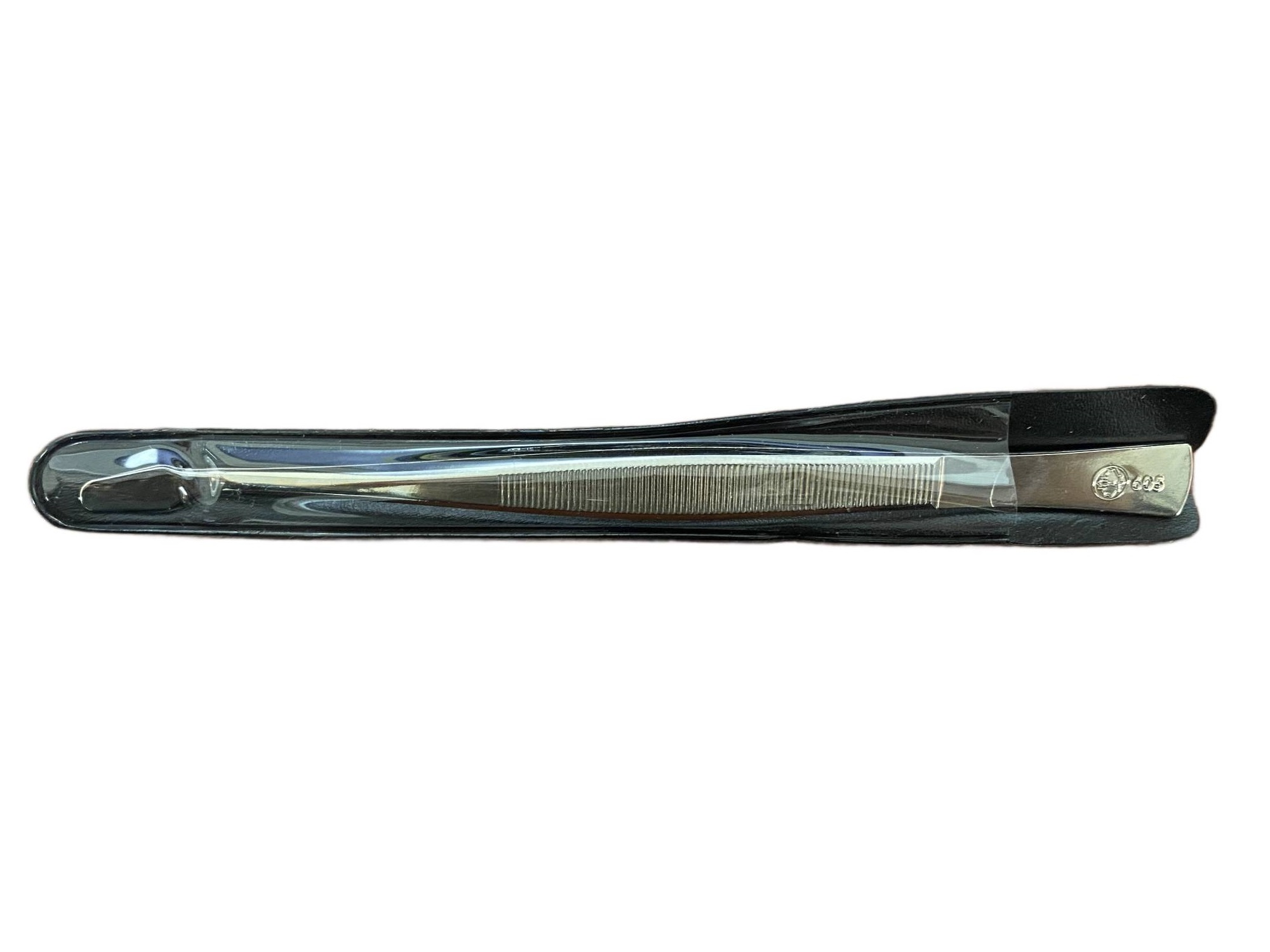 This is a 6" Dealer Tong with a bent, spade tip. It comes with a black protective sheath made of plastic. Uni-Safe stamp tongs have been the best-selling tongs in Canada for years and for a simple reason - unsurpassed quality at economical prices. Made in Solingen, Germany, all Uni-Safe tongs are heavily nickel clad to resist corrosion.