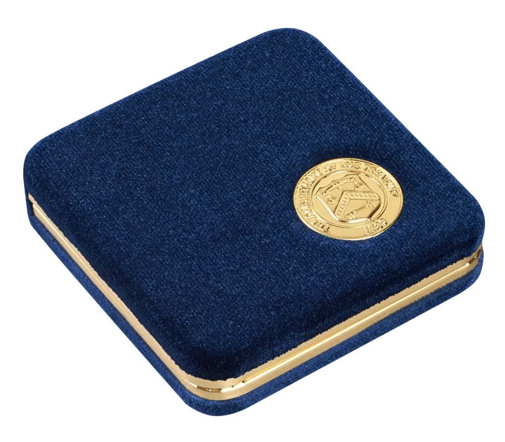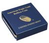 These rich blue plush covered metal boxes are made for holding raw modern American Eagles. They make an ideal gift or presentation box. The boxes snap closed. The lid is lined with white satin imprinted with the American Eagle logo.