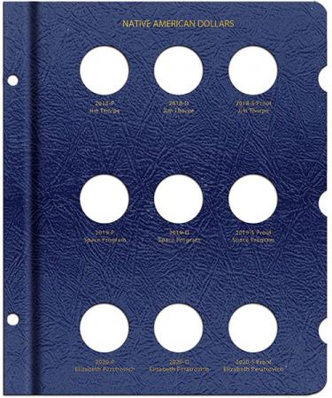 Native American dated update page for Whitman Classic Albums or the Universal Binder. Grained leatherette texture. Native American Dated Page has 9 openings for 2018 to 2020 for P, D and S mint coins.