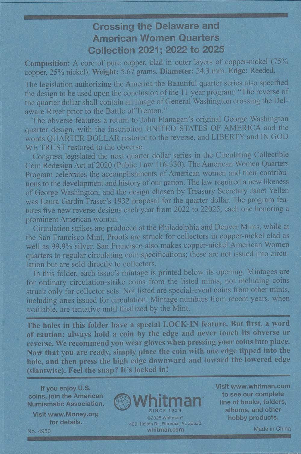 Whitman Folder 4950: Crossing the Delaware and American Women Quarters, 2021-2025