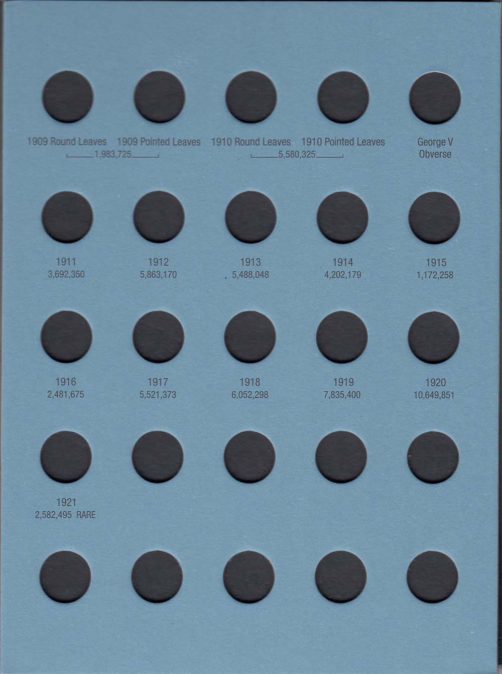 These classic folders have been a mainstay in the hobby for decades. Attractive blue in color, each folder opens flat so that all coins can be viewed at once. Each folder includes mintage figures and other data for the series.