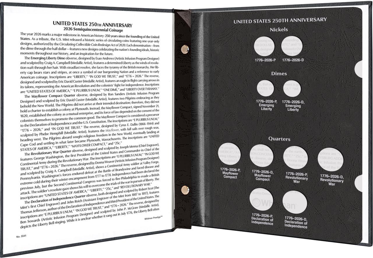Whitman Prestige Coin Album - United States 250th Anniversary Collection: 2026 Date & Mintmark Set -- Black